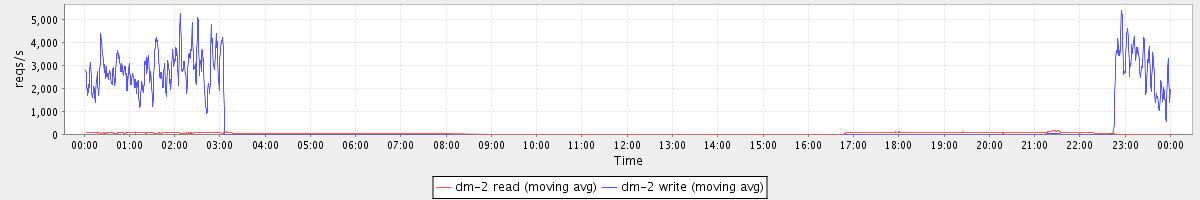 avg(dm-2 read) = 2708.57 avg(dm-2 write) = 2034.65