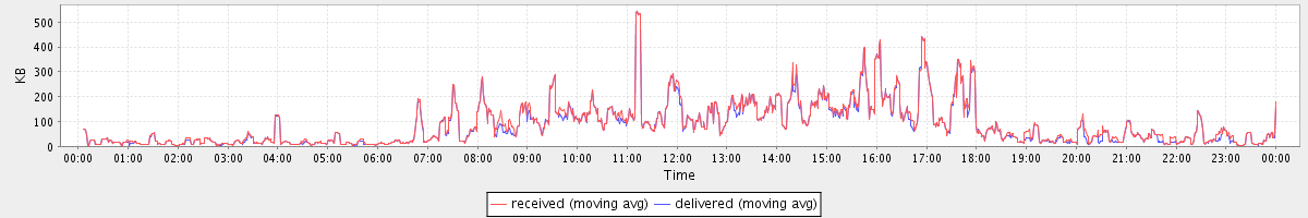 avg(received msgs) = 0.95 avg(delivered msgs) = 0.94 avg(received x rcpts) = 0.95
