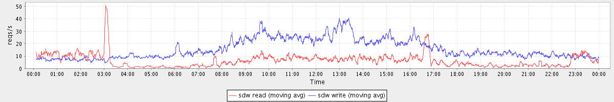 avg(sda1 read) = 28.49 avg(sda1 write) = 43.05