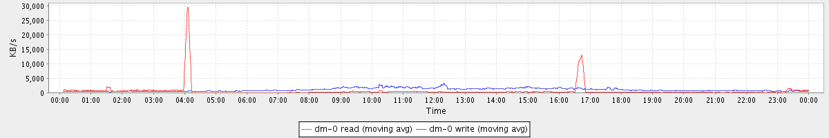 avg(dm-0 read) = 30.26 avg(dm-0 write) = 171.07