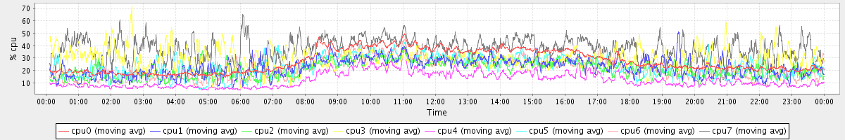 avg(cpu0) = 27.11 avg(cpu1) = 22.55 avg(cpu2) = 20.83 avg(cpu3) = 29.32 avg(cpu4) = 12.15 avg(cpu5) = 23.03 avg(cpu6) = 21.56 avg(cpu7) = 36.90