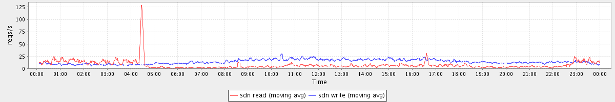 avg(sdn read) = 130.86 avg(sdn write) = 213.52