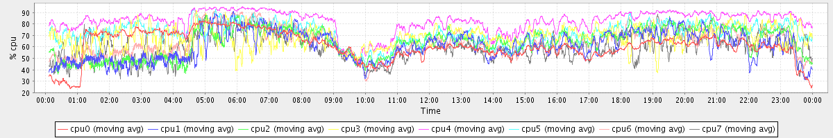 avg(cpu0) = 60.91 avg(cpu1) = 60.88 avg(cpu2) = 64.05 avg(cpu3) = 68.00 avg(cpu4) = 82.33 avg(cpu5) = 71.97 avg(cpu6) = 64.90 avg(cpu7) = 60.52