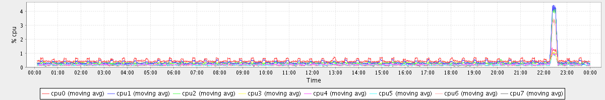 avg(cpu0) = 0.46 avg(cpu1) = 0.37 avg(cpu2) = 0.32 avg(cpu3) = 0.32 avg(cpu4) = 0.21 avg(cpu5) = 0.17 avg(cpu6) = 0.15 avg(cpu7) = 0.13