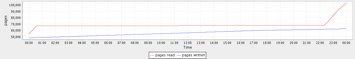 avg(pages read) = 68485.91 avg(pages written) = 55862.16