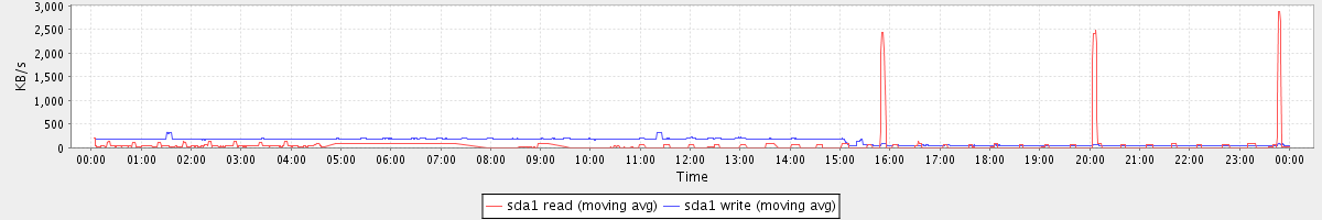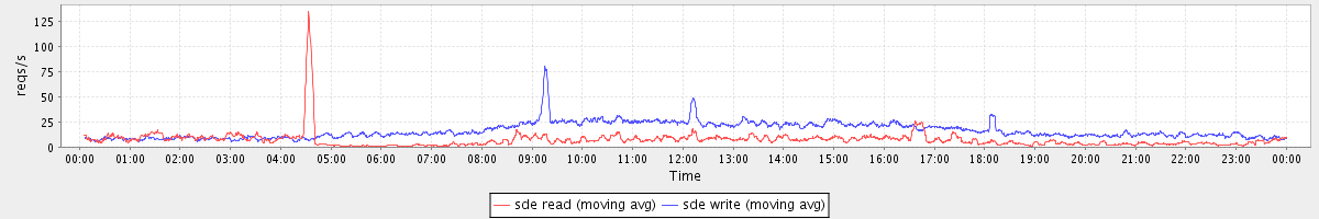 avg(sda1 read) = 38.28 avg(sda1 write) = 135.65