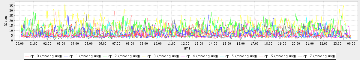 avg(cpu0) = 3.83 avg(cpu1) = 5.91 avg(cpu2) = 12.28 avg(cpu3) = 13.70 avg(cpu4) = 2.98 avg(cpu5) = 5.25 avg(cpu6) = 8.17 avg(cpu7) = 7.23