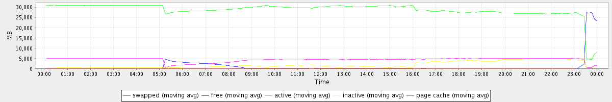 avg(swapped) = 0.21 avg(free) = 914.47 avg(active) = 28782.59 avg(inactive) = 1771.33 avg(page cache) = 4264.53