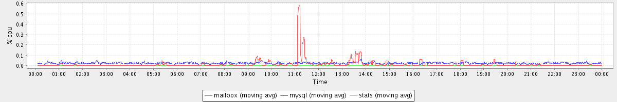 avg(mailbox) = 0.01 avg(mysql) = 0.02 avg(stats) = 0.00