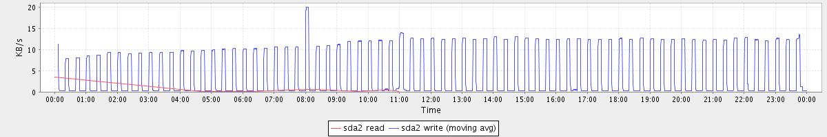 avg(sda read) = 0.13 avg(sda write) = 38.69