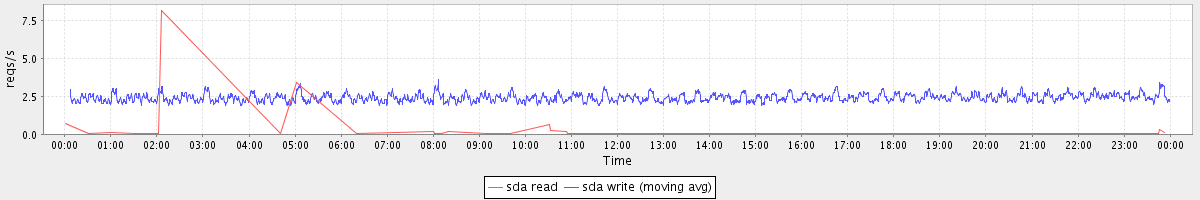 avg(sda read) = 0.01 avg(sda write) = 2.42