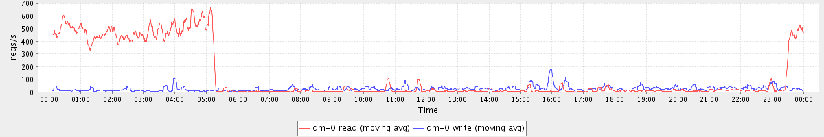 avg(dm-1 read) = 24.36 avg(dm-1 write) = 643.25