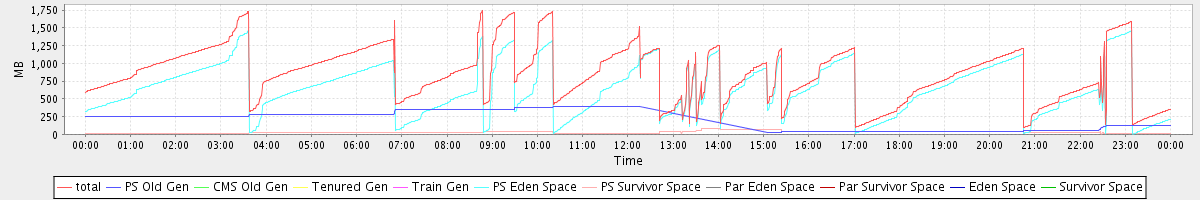 avg(total) = 853.99 avg(PS Old Gen) = 180.38 avg(CMS Old Gen) = 0.00 avg(Tenured Gen) = 0.00 avg(Train Gen) = 0.00 avg(PS Eden Space) = 641.90 avg(PS Survivor Space) = 31.71 avg(Par Eden Space) = 0.00 avg(Par Survivor Space) = 0.00 avg(Eden Space) = 0.00 avg(Survivor Space) = 0.00