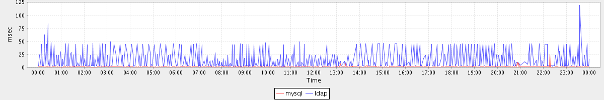 avg(mysql) = 0.40 avg(ldap) = 5.42