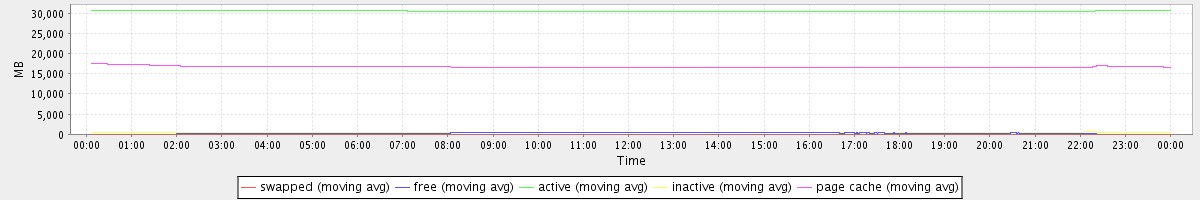 avg(swapped) = 0.25 avg(free) = 291.14 avg(active) = 30505.68 avg(inactive) = 531.39 avg(page cache) = 16762.80