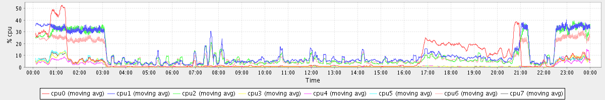 avg(cpu0) = 1.40 avg(cpu1) = 0.33 avg(cpu2) = 0.28 avg(cpu3) = 0.12 avg(cpu4) = 0.11 avg(cpu5) = 0.11 avg(cpu6) = 0.25 avg(cpu7) = 0.11