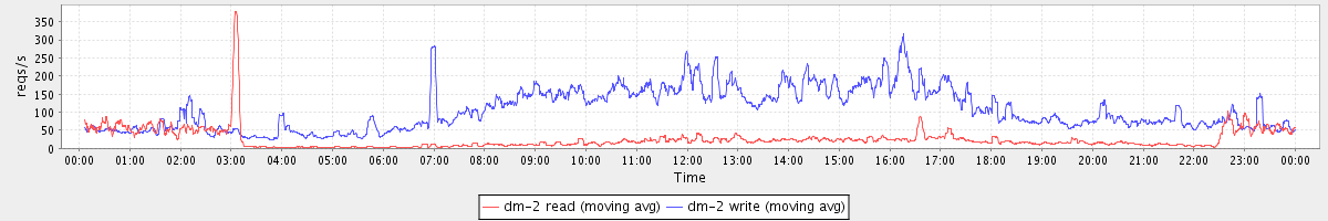 avg(dm-2 read) = 447.84 avg(dm-2 write) = 731.64