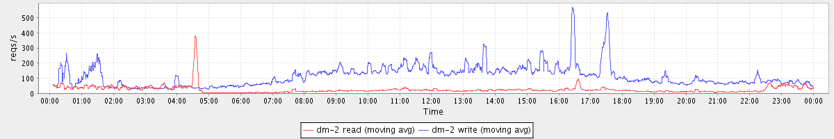 avg(dm-2 read) = 472.02 avg(dm-2 write) = 726.54