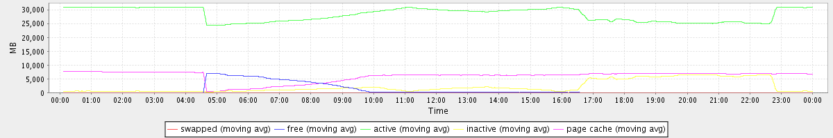 avg(swapped) = 0.25 avg(free) = 1036.59 avg(active) = 28251.62 avg(inactive) = 2221.59 avg(page cache) = 5918.16