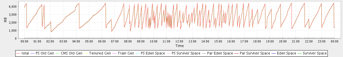 avg(total) = 2669.15 avg(PS Old Gen) = 0.00 avg(CMS Old Gen) = 2648.12 avg(Tenured Gen) = 0.00 avg(Train Gen) = 0.00 avg(PS Eden Space) = 0.00 avg(PS Survivor Space) = 0.00 avg(Par Eden Space) = 21.03 avg(Par Survivor Space) = 0.00 avg(Eden Space) = 0.00 avg(Survivor Space) = 0.00