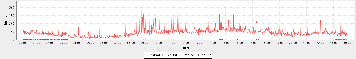 avg(minor GC count) = 43.67 avg(major GC count) = 0.31
