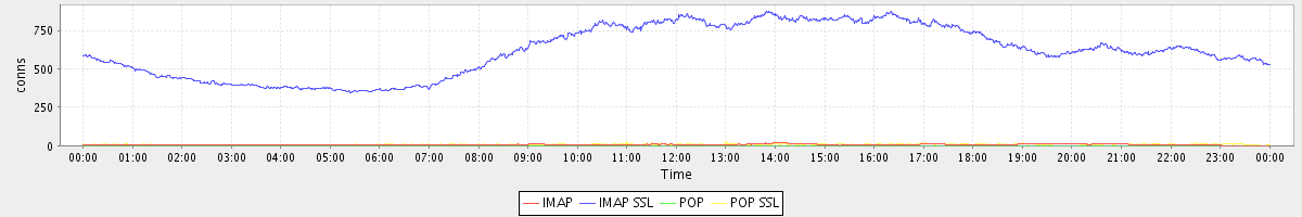 avg(IMAP) = 6.57 avg(IMAP SSL) = 616.46 avg(POP) = 0.11 avg(POP SSL) = 8.40