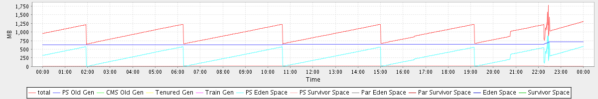 avg(total) = 971.14 avg(PS Old Gen) = 642.21 avg(CMS Old Gen) = 0.00 avg(Tenured Gen) = 0.00 avg(Train Gen) = 0.00 avg(PS Eden Space) = 309.76 avg(PS Survivor Space) = 19.16 avg(Par Eden Space) = 0.00 avg(Par Survivor Space) = 0.00 avg(Eden Space) = 0.00 avg(Survivor Space) = 0.00