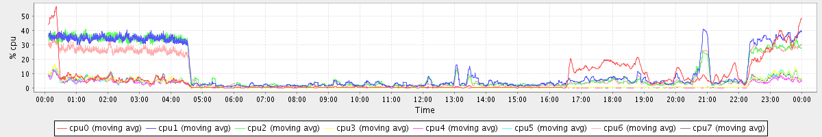 avg(cpu0) = 1.57 avg(cpu1) = 1.47 avg(cpu2) = 1.33 avg(cpu3) = 0.65 avg(cpu4) = 0.46 avg(cpu5) = 0.53 avg(cpu6) = 1.06 avg(cpu7) = 0.47