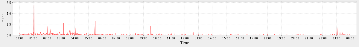 max(GetFreeBusyRequest) = 44.00 max(AuthRequest) = 282.00 max(SearchRequest) = 648.00 max(SearchConvRequest) = 44.00 max(GetInfoRequest) = 283.00 max(MsgActionRequest.delete) = 418.00 max(ItemActionRequest.delete) = 82.00 max(NoOpRequest) = 62.00 max(GetFolderRequest) = 49.00 max(SyncRequest) = 42.00