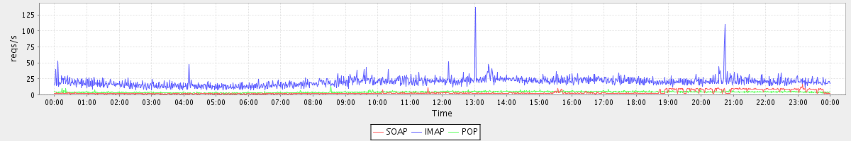 Host zm01.stanford.edu: Mailboxd: Request Rate by Client Protocol