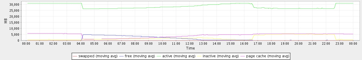 avg(swapped) = 0.25 avg(free) = 1180.70 avg(active) = 28363.71 avg(inactive) = 2029.04 avg(page cache) = 4115.74