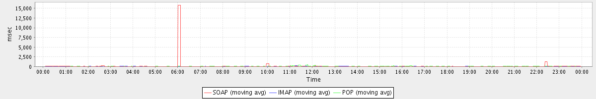 Host zm09.stanford.edu: Mailboxd: Response Time by Client Protocol