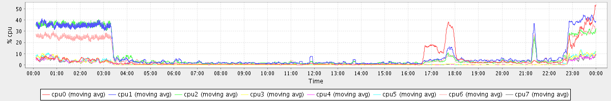 avg(cpu0) = 1.52 avg(cpu1) = 1.09 avg(cpu2) = 0.92 avg(cpu3) = 0.45 avg(cpu4) = 0.32 avg(cpu5) = 0.32 avg(cpu6) = 0.69 avg(cpu7) = 0.28