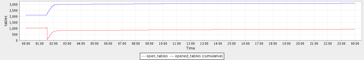 avg(open_tables) = 873.91 avg(opened_tables (cumulative)) = 3000.15