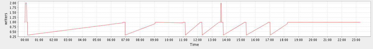 avg(dm-1 read) = 0.43 avg(dm-1 write) = 21.05