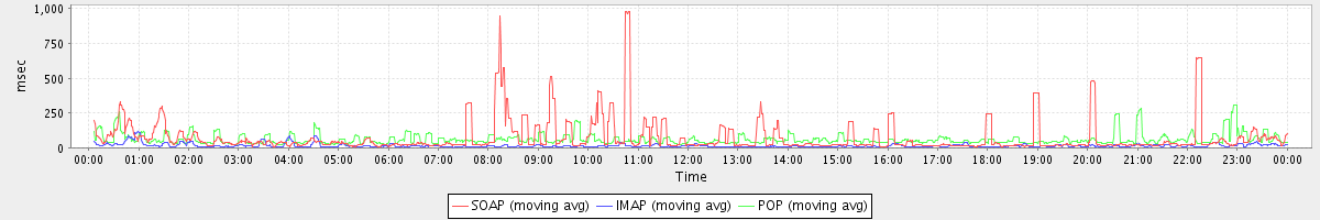 Host zm08.stanford.edu: Mailboxd: Response Time by Client Protocol