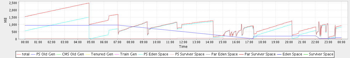 avg(total) = 1078.73 avg(PS Old Gen) = 322.76 avg(CMS Old Gen) = 0.00 avg(Tenured Gen) = 0.00 avg(Train Gen) = 0.00 avg(PS Eden Space) = 720.68 avg(PS Survivor Space) = 35.28 avg(Par Eden Space) = 0.00 avg(Par Survivor Space) = 0.00 avg(Eden Space) = 0.00 avg(Survivor Space) = 0.00