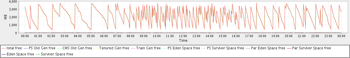 avg(total free) = 2118.09 avg(PS Old Gen free) = 0.00 avg(CMS Old Gen free) = 2097.08 avg(Tenured Gen free) = 0.00 avg(Train Gen free) = 0.00 avg(PS Eden Space free) = 0.00 avg(PS Survivor Space free) = 0.00 avg(Par Eden Space free) = 20.94 avg(Par Survivor Space free) = 0.06 avg(Eden Space free) = 0.00 avg(Survivor Space free) = 0.00