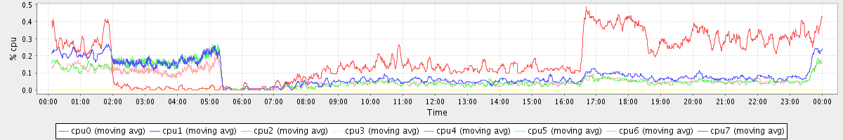 avg(cpu0) = 0.17 avg(cpu1) = 0.09 avg(cpu2) = 0.07 avg(cpu3) = 0.00 avg(cpu4) = 0.00 avg(cpu5) = 0.00 avg(cpu6) = 0.06 avg(cpu7) = 0.00
