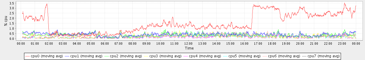avg(cpu0) = 1.53 avg(cpu1) = 0.39 avg(cpu2) = 0.35 avg(cpu3) = 0.21 avg(cpu4) = 0.14 avg(cpu5) = 0.16 avg(cpu6) = 0.30 avg(cpu7) = 0.18
