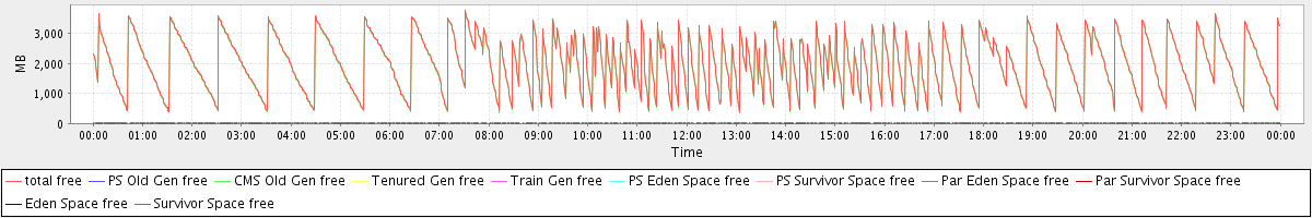 avg(total free) = 1991.74 avg(PS Old Gen free) = 0.00 avg(CMS Old Gen free) = 1970.92 avg(Tenured Gen free) = 0.00 avg(Train Gen free) = 0.00 avg(PS Eden Space free) = 0.00 avg(PS Survivor Space free) = 0.00 avg(Par Eden Space free) = 20.76 avg(Par Survivor Space free) = 0.06 avg(Eden Space free) = 0.00 avg(Survivor Space free) = 0.00