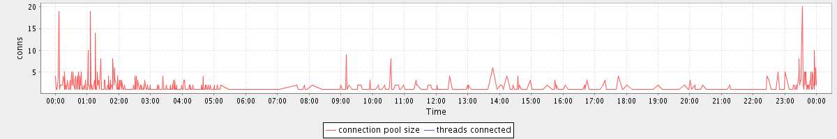 avg(connection pool size) = 0.72 avg(threads connected) = 0.00