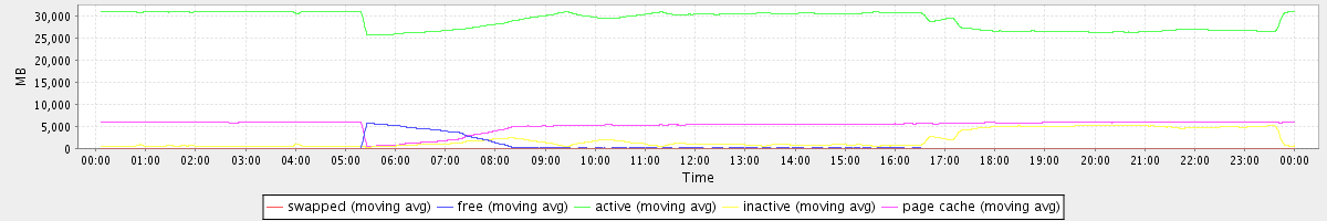avg(swapped) = 0.25 avg(free) = 536.19 avg(active) = 28952.29 avg(inactive) = 2011.41 avg(page cache) = 5232.74