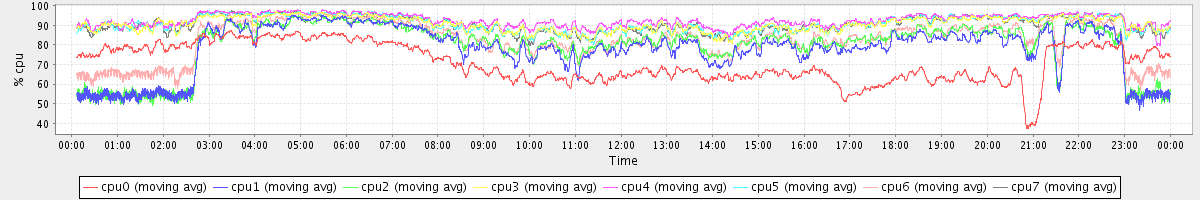 avg(cpu0) = 1.14 avg(cpu1) = 0.24 avg(cpu2) = 0.22 avg(cpu3) = 0.11 avg(cpu4) = 0.07 avg(cpu5) = 0.09 avg(cpu6) = 0.19 avg(cpu7) = 0.10
