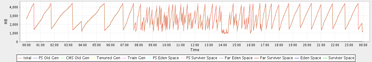 avg(total) = 2747.90 avg(PS Old Gen) = 0.00 avg(CMS Old Gen) = 2727.51 avg(Tenured Gen) = 0.00 avg(Train Gen) = 0.00 avg(PS Eden Space) = 0.00 avg(PS Survivor Space) = 0.00 avg(Par Eden Space) = 20.39 avg(Par Survivor Space) = 0.00 avg(Eden Space) = 0.00 avg(Survivor Space) = 0.00