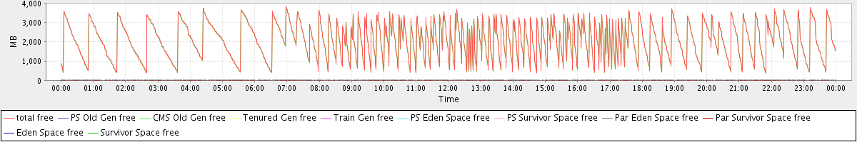 avg(total free) = 2065.24 avg(PS Old Gen free) = 0.00 avg(CMS Old Gen free) = 2044.70 avg(Tenured Gen free) = 0.00 avg(Train Gen free) = 0.00 avg(PS Eden Space free) = 0.00 avg(PS Survivor Space free) = 0.00 avg(Par Eden Space free) = 20.48 avg(Par Survivor Space free) = 0.06 avg(Eden Space free) = 0.00 avg(Survivor Space free) = 0.00
