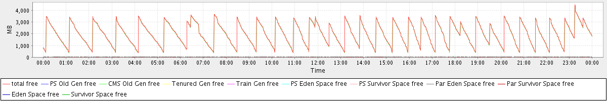 avg(total free) = 1993.10 avg(PS Old Gen free) = 0.00 avg(CMS Old Gen free) = 1972.18 avg(Tenured Gen free) = 0.00 avg(Train Gen free) = 0.00 avg(PS Eden Space free) = 0.00 avg(PS Survivor Space free) = 0.00 avg(Par Eden Space free) = 20.86 avg(Par Survivor Space free) = 0.06 avg(Eden Space free) = 0.00 avg(Survivor Space free) = 0.00