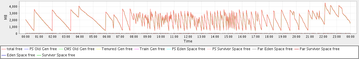 avg(total free) = 2118.71 avg(PS Old Gen free) = 0.00 avg(CMS Old Gen free) = 2097.28 avg(Tenured Gen free) = 0.00 avg(Train Gen free) = 0.00 avg(PS Eden Space free) = 0.00 avg(PS Survivor Space free) = 0.00 avg(Par Eden Space free) = 21.37 avg(Par Survivor Space free) = 0.06 avg(Eden Space free) = 0.00 avg(Survivor Space free) = 0.00