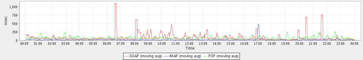 Host zm05.stanford.edu: Mailboxd: Response Time by Client Protocol