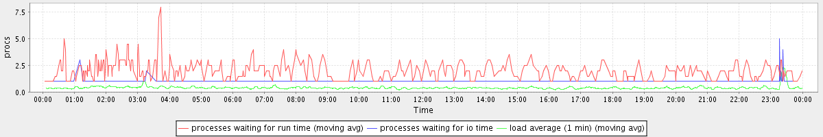 avg(processes waiting for run time) = 0.34 avg(processes waiting for io time) = 0.03 avg(load average (1 min)) = 0.41